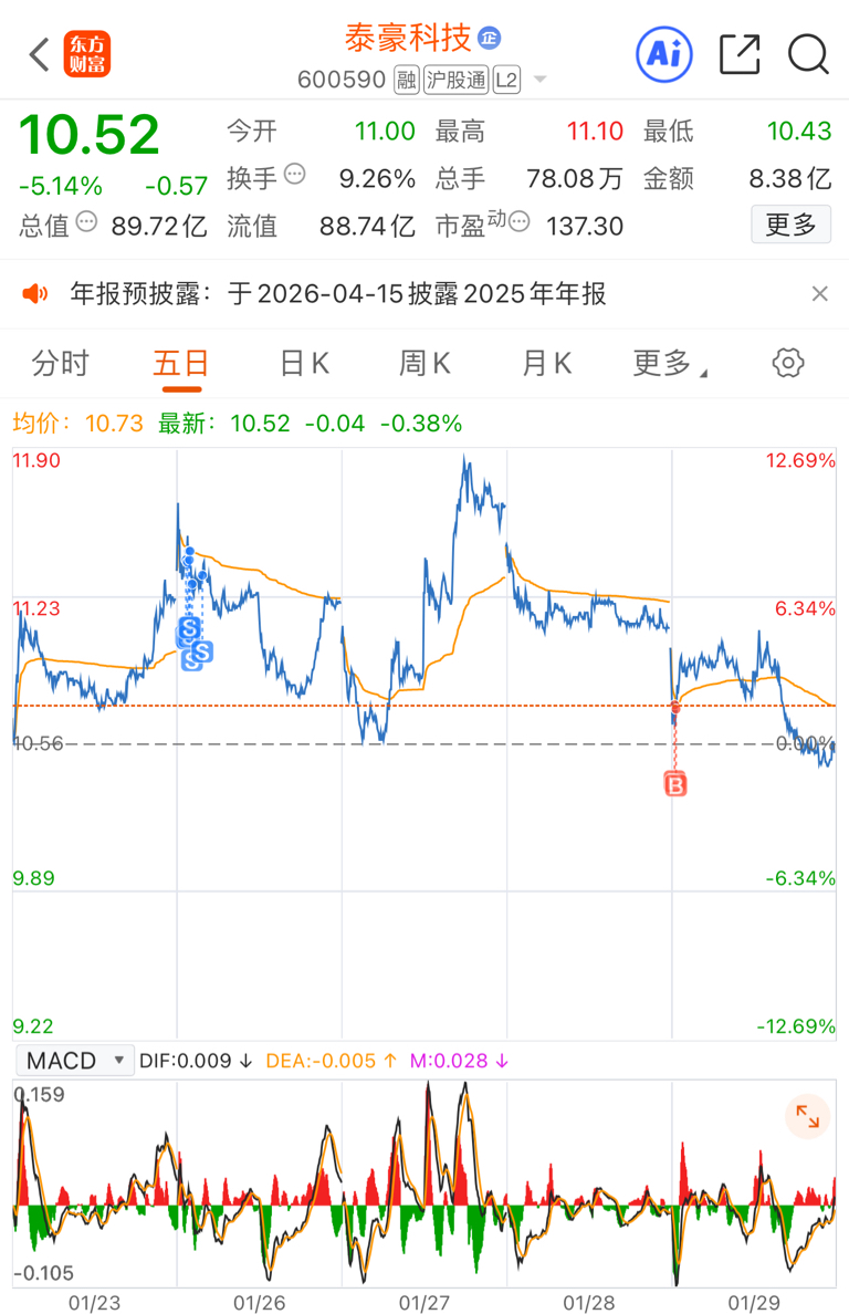 $泰豪科技(SH600590)$ 前几天全仓清仓了,一直在说马上出货,他不是主流是杂毛,他没有热点,大盘环境这么差,他能好好涨? 还幻想多少个涨停板,拿到利润或者回本赶紧撤,今天主力接着出货,早盘低开接了点,本来盈利,没想到下午下杀,主力完全为了出货掩饰都不带掩饰的,建议近期小仓位试错,不要重仓,资金都跑去白酒和地产这个老登股了,你说大盘环境有多不好,要么清仓,要么管住手