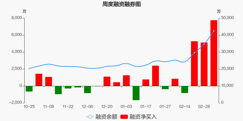 龙溪股份本周(2025/03/03-2025/03/07)累计涨幅达35.81%,截至3月7日最新股价报收20.10元。从增量上来看,3月3日至3月7日融资买入交易规模4.41亿元,融资偿还规模3.63亿元,期内融资净买入7756.77万元。从存量上来看,截止3月9日,龙溪股份融资融券余额4.25亿元,其中融资余额规模4.25亿元,融券余额规模0元。