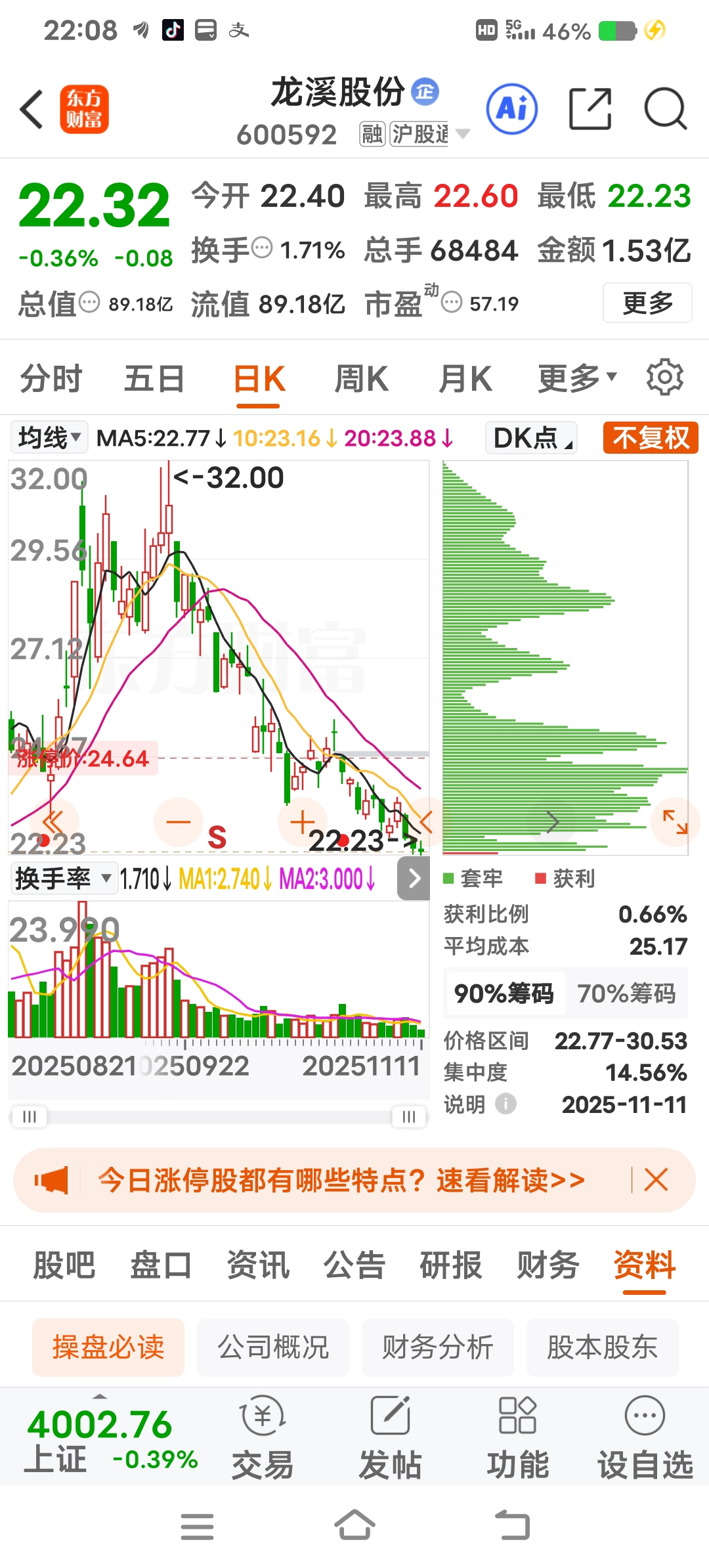 $龙溪股份(SH600592)$ 24.88本,绿油油的真像韭菜