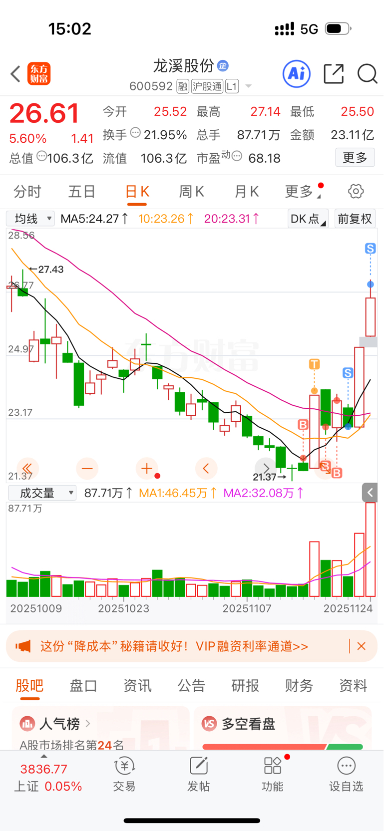$龙溪股份(SH600592)$ 留了一点,看下下午的榜再说