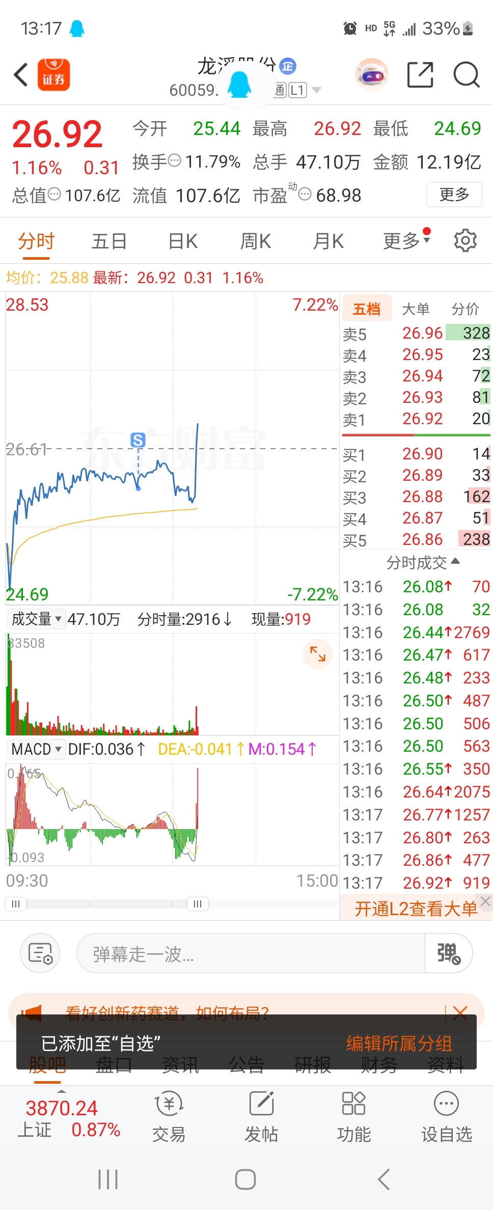 $龙溪股份(SH600592)$ 我是大韭菜
