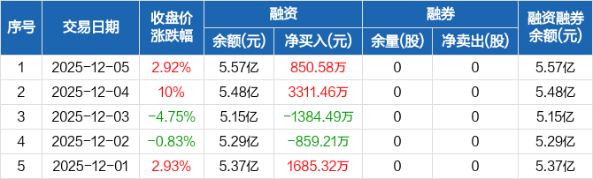 龙溪股份:融资净买入850.58万元,融资余额5.57亿元(12-05)