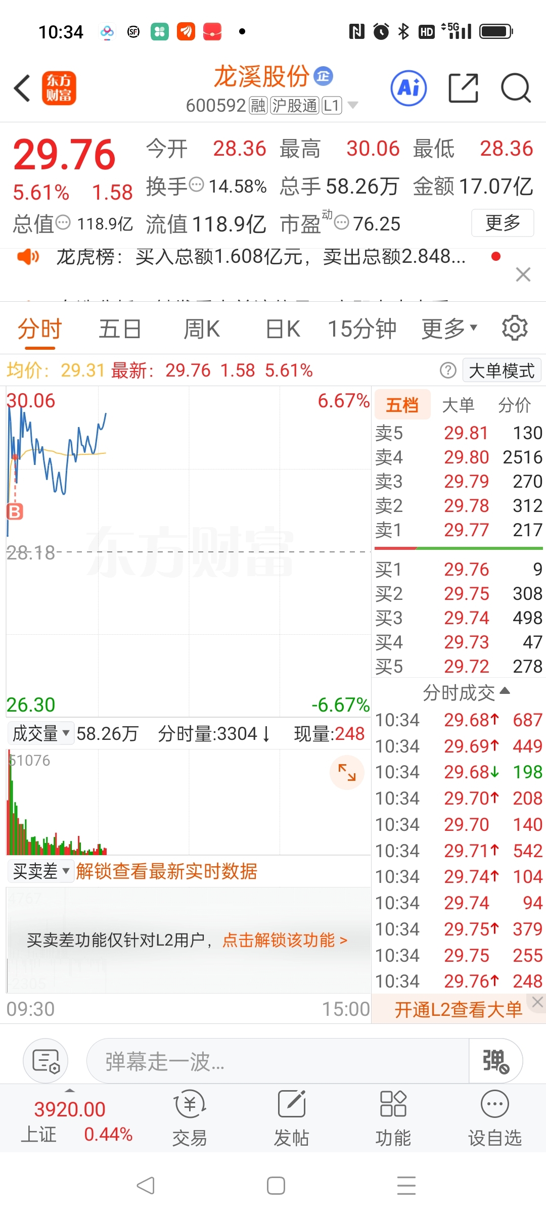 $龙溪股份(SH600592)$ 托?大清早就看好买入了,明天必涨,因为我买了