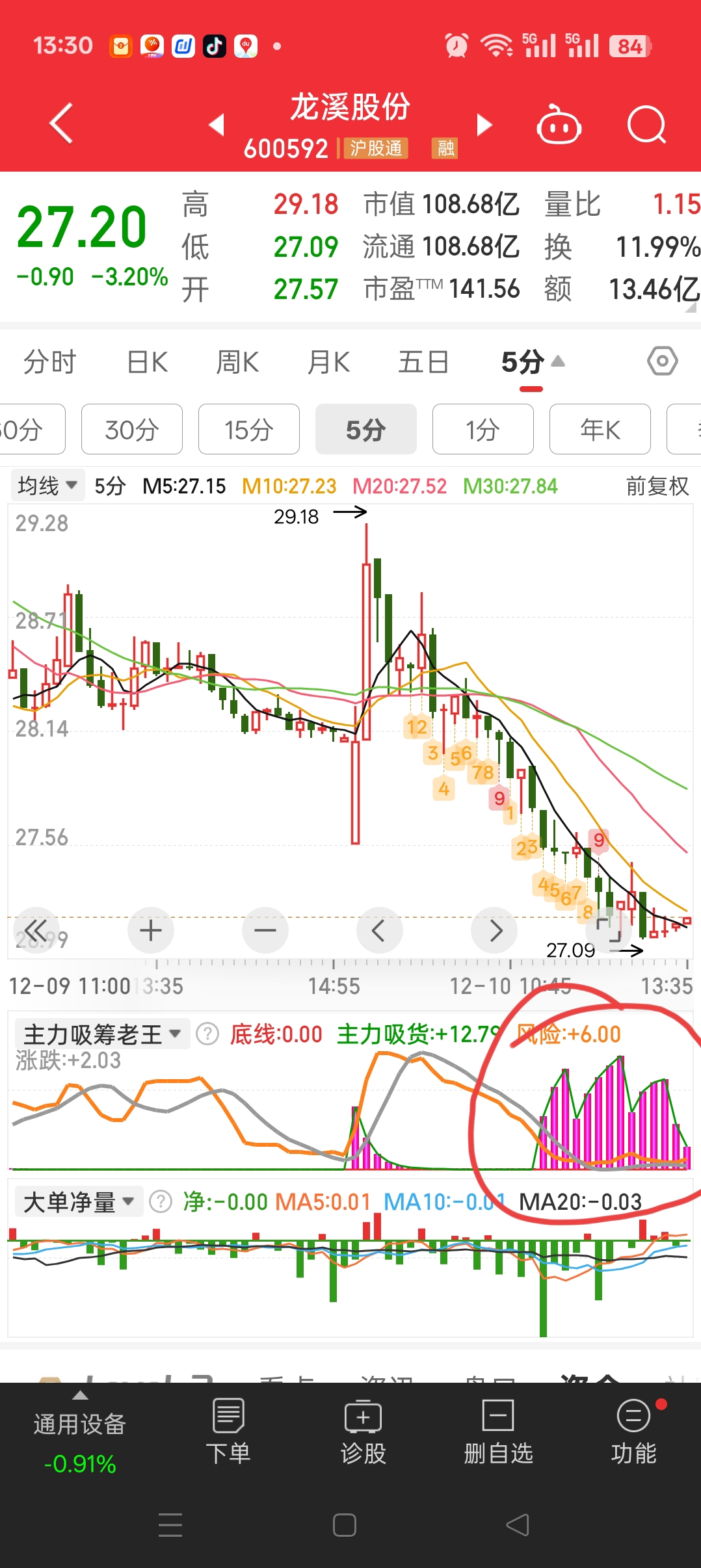 $龙溪股份(SH600592)$ 到底了。吸筹也差不多了。加仓你们随意,我没仓位了