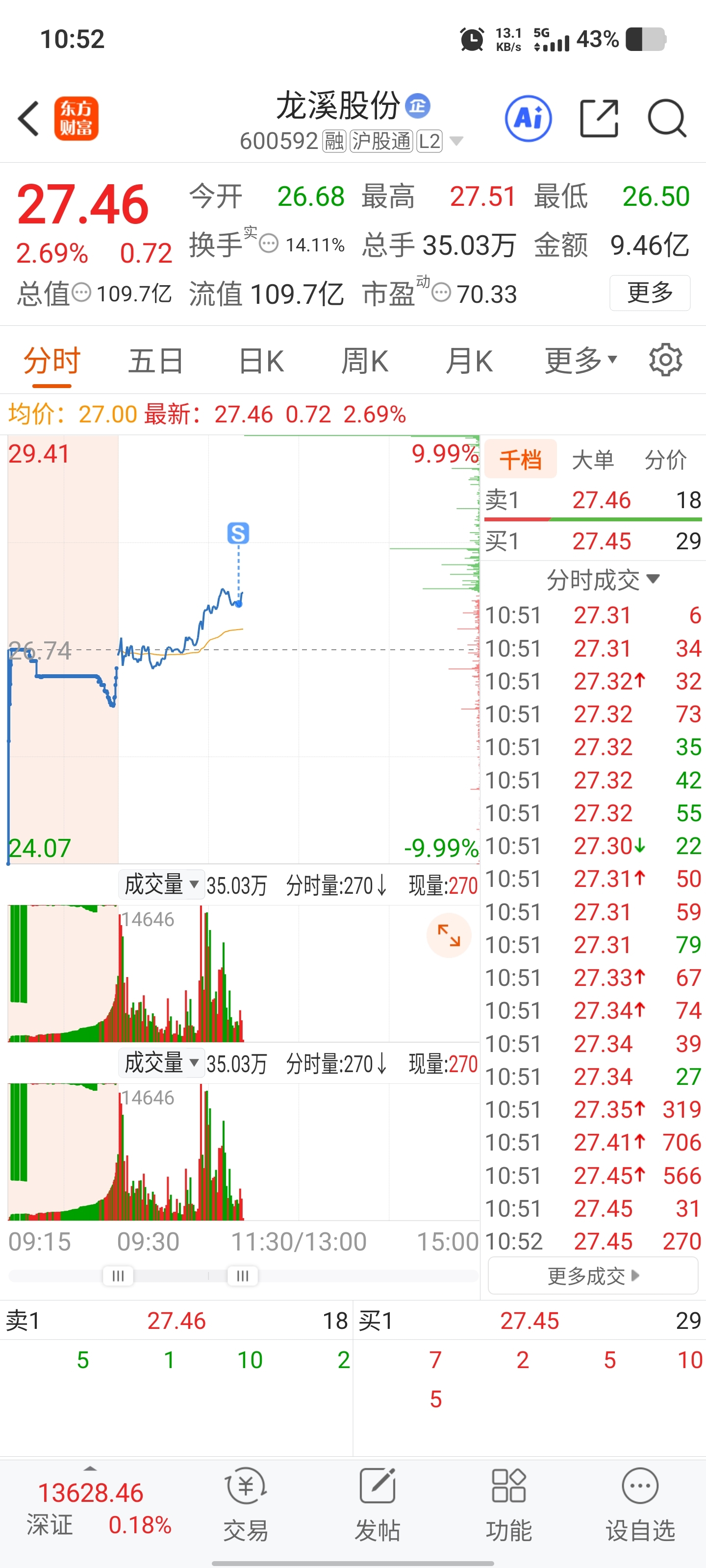 $龙溪股份(SH600592)$ 上周五被套,回本了,走了。