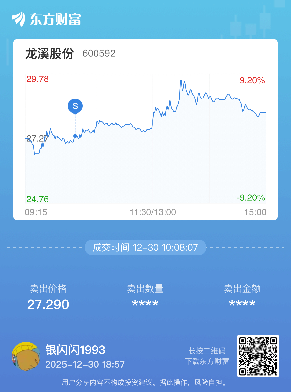 温馨提示: 1.根据《证券法》规定,禁止编造、传播虚假信息或者误导性信息,扰乱证券市场;2.用户在本社区发表的所有资料、言论等仅代表个人观点,与本网站立场无关,不对您构成任何投资建议。用户应基于自己的独立判断,自行决定证券投资并承担相应风险。《东方财富社区管理规定》