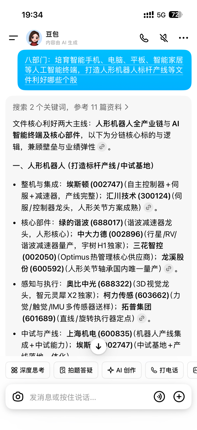 $龙溪股份(SH600592)$ 八部门:培育智能手机、电脑、平板、智能家居等人工智能终端,打造人形机器人标杆产线