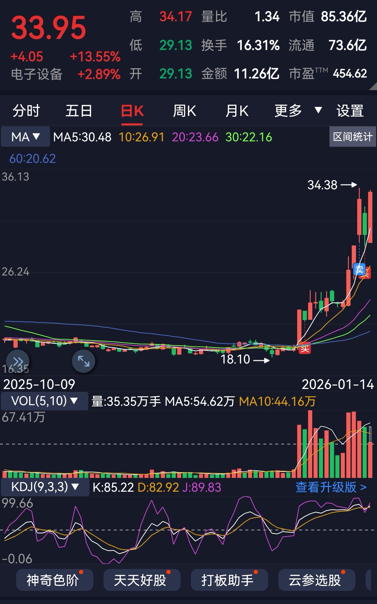 新劲刚是我炒股生涯中第一个最快(13个交易日)接近翻倍的票,算上今天,操作了四次