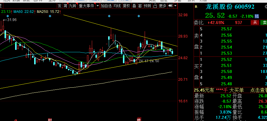 这个图就看得很直白了。三浪。最低点一浪比一浪高。25块估计还是会触碰一下后继续涨