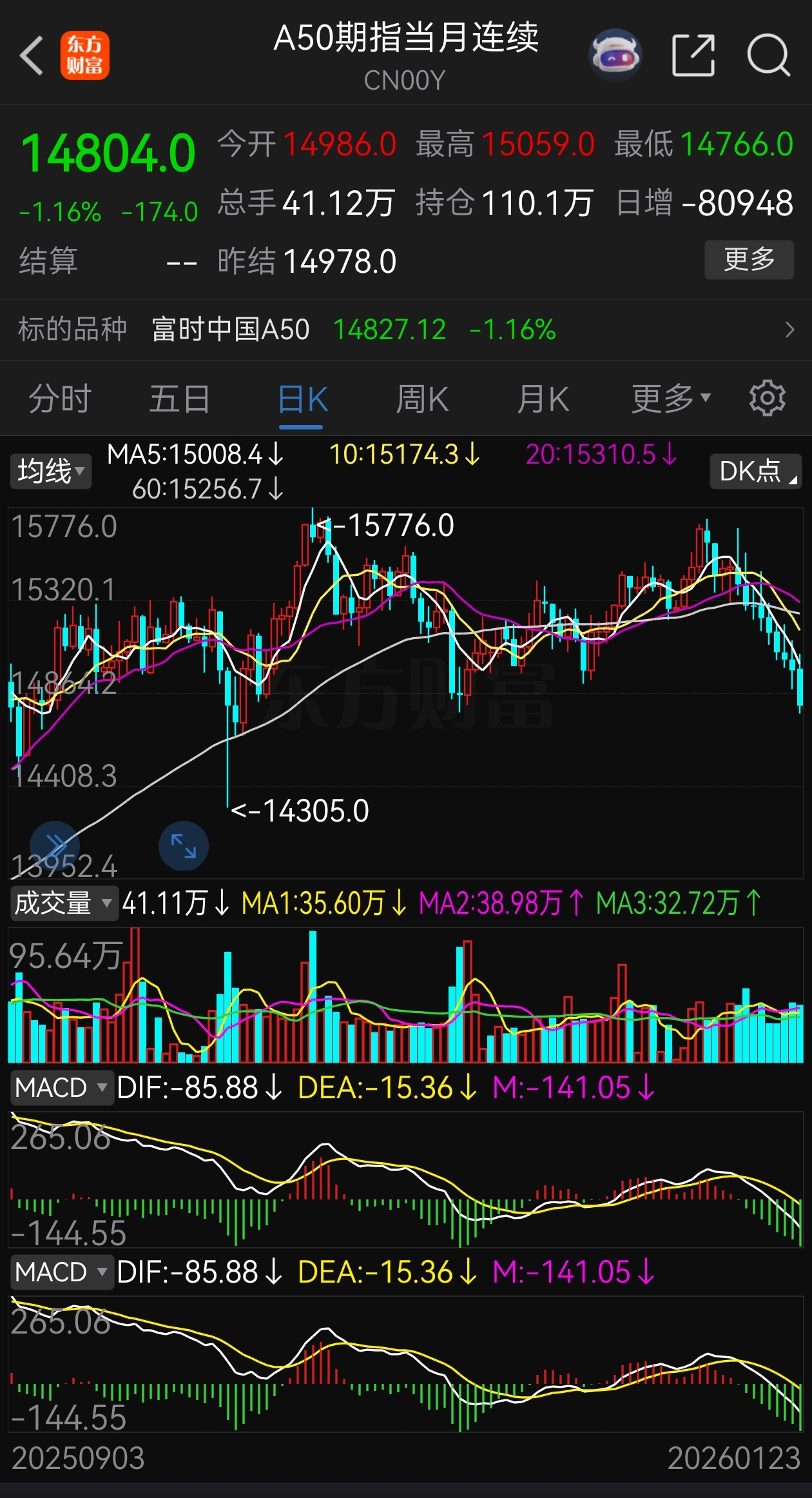 看着A50的走势,也为了自己元月份开门红,力争让浮盈达到十个点,今天减仓了两个弱