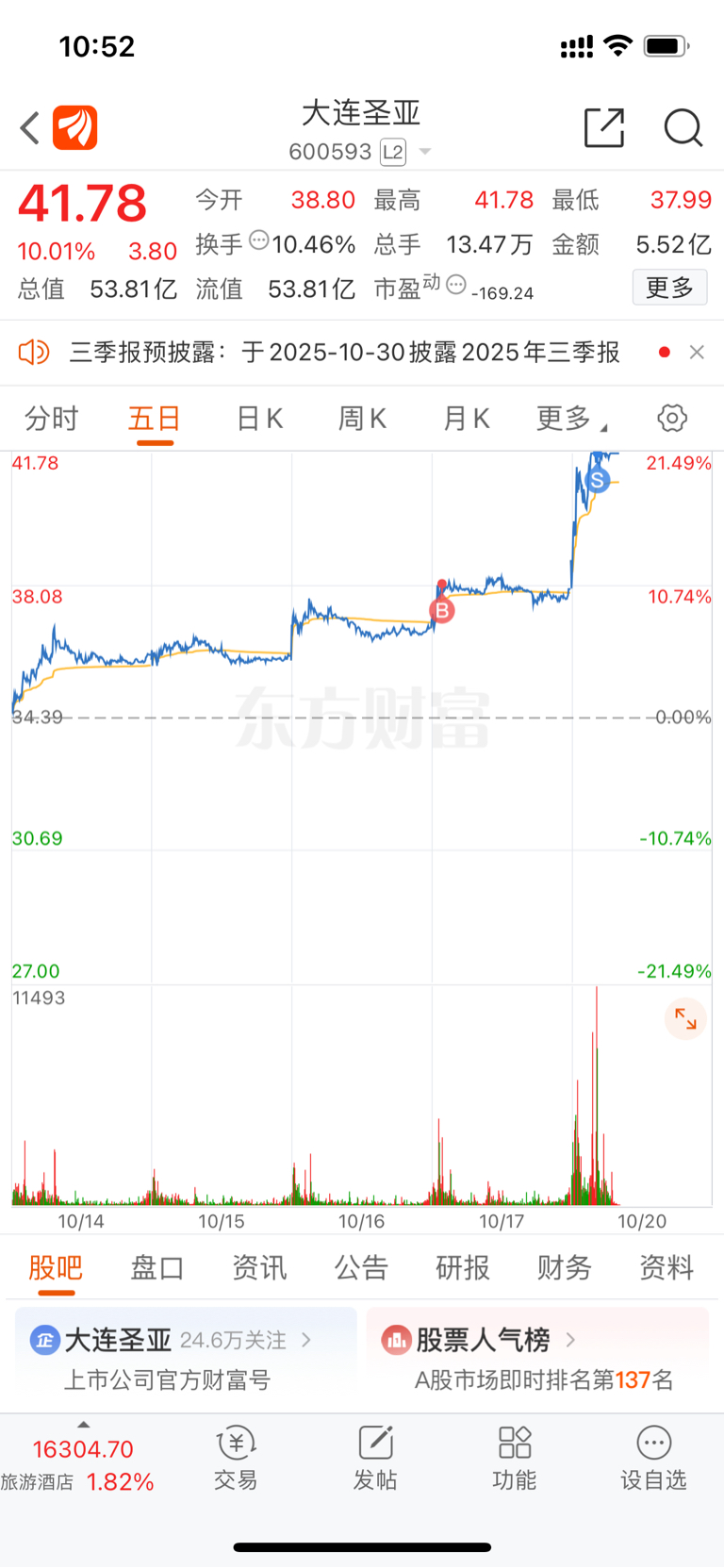 $大连圣亚(SH600593)$ 我卖光了,主力可以使劲拉了