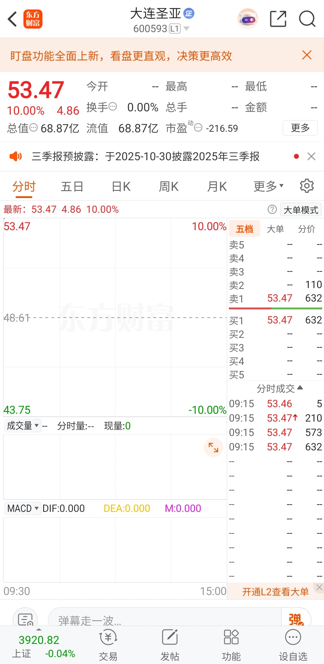 $大连圣亚(SH600593)$ 还好,我涨停的时候截屏了