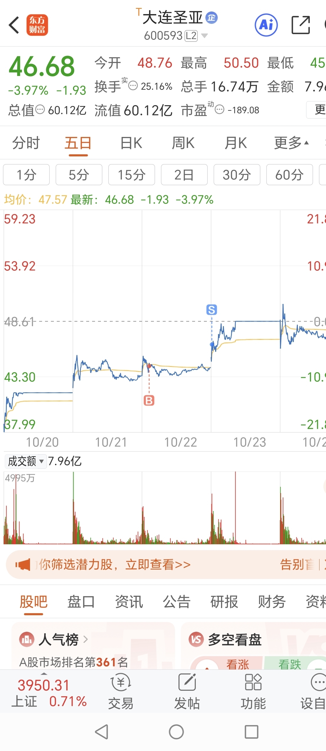 $大连圣亚(SH600593)$ 赚钱不易,加油
