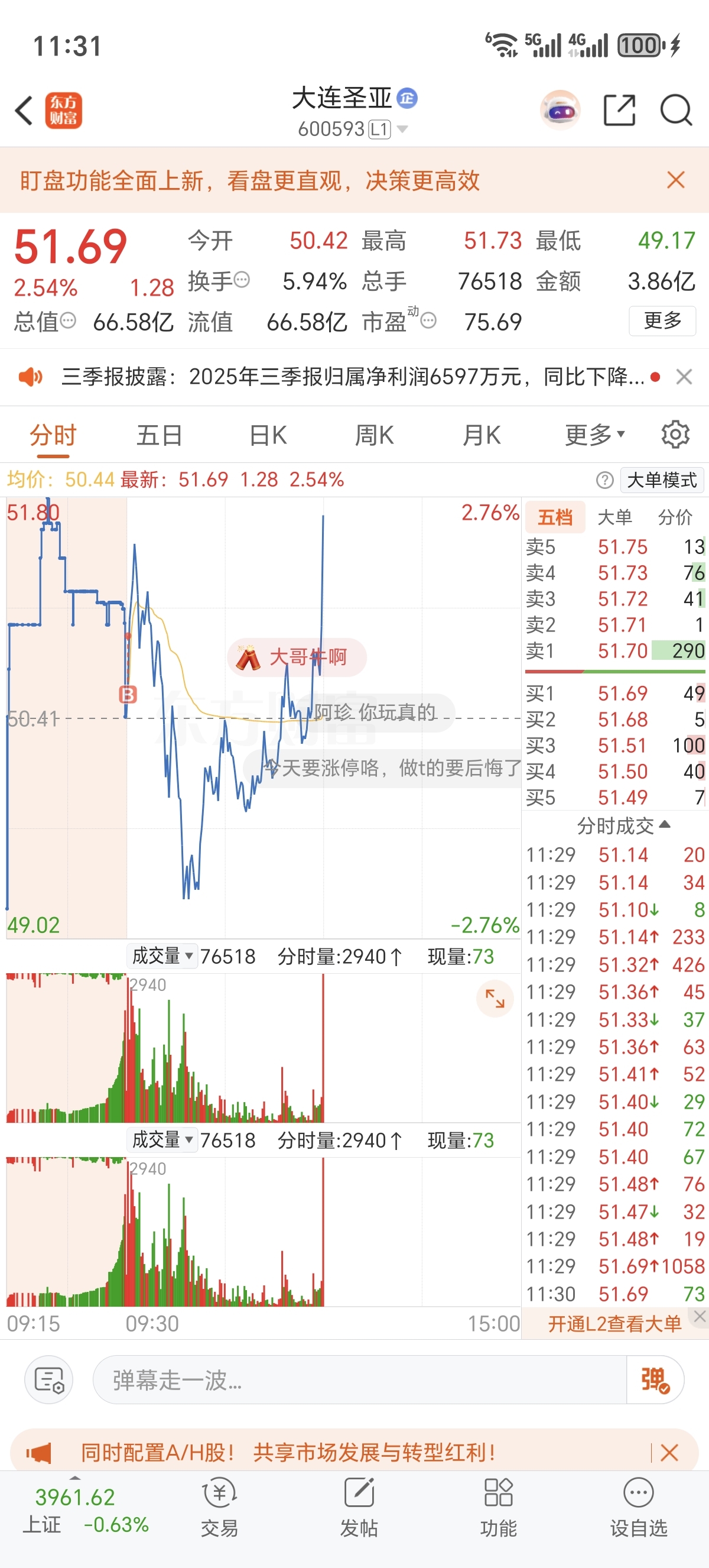 $大连圣亚(SH600593)$ 追高了,果然是龙头