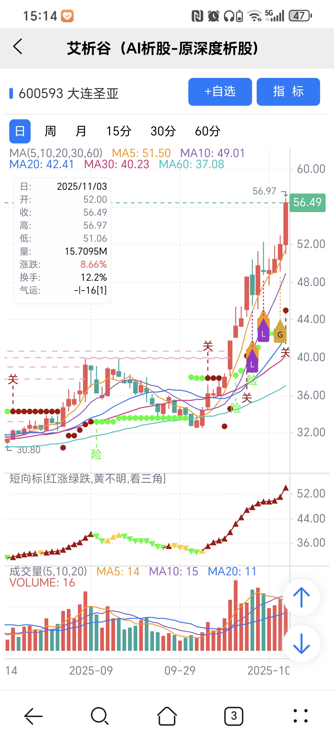 图中A、G、L 关注标记是对应AI选股模型当天下午2点多给出。