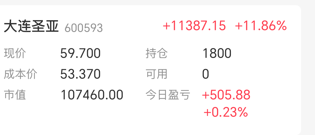 $大连圣亚(SH600593)$ 今天这么收盘可以接受,做了个T还赚500
