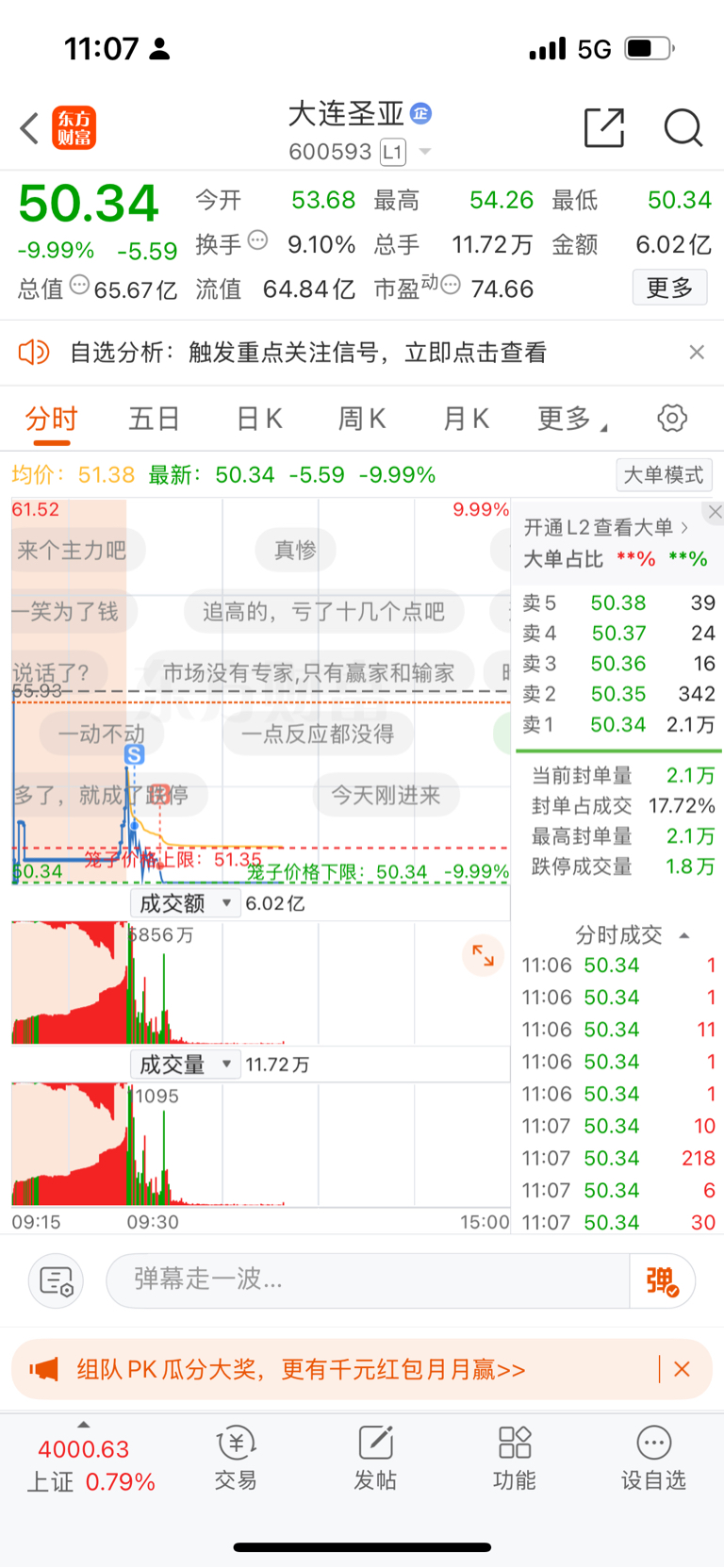 $大连圣亚(SH600593)$ 简单做个T,今天盈利全部亏回去了