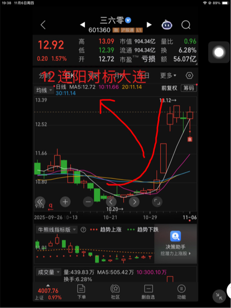 号外号外,这只三六零走势跟大连圣亚启动时的走势一样样,有没有想一起参与进来的,我