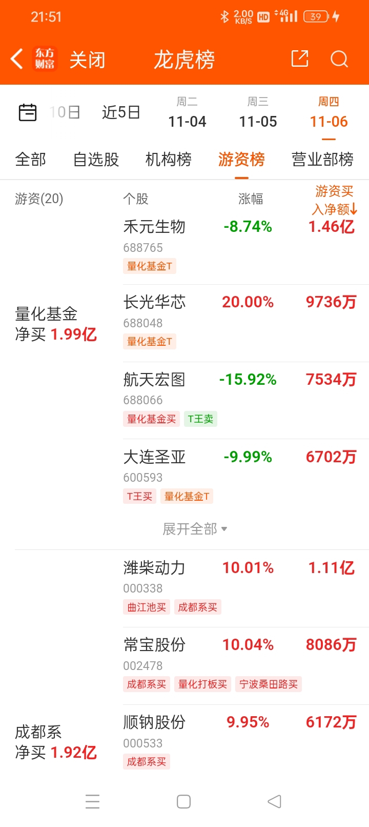 $大连圣亚(SH600593)$ 有位股友找不到游资榜,请打开东方财富,点击龙虎榜,再点击游资榜,往上拉就可找到大连圣亚。