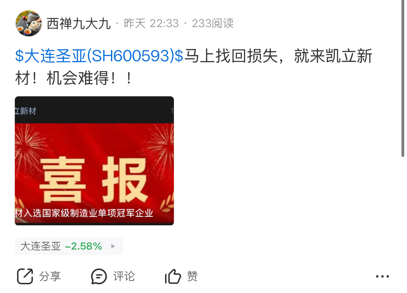 $大连圣亚(SH600593)$ 已大涨! 昨天晚上看我贴子的人不知道有没有听进去!自作孽…… 想救人都难,哎!