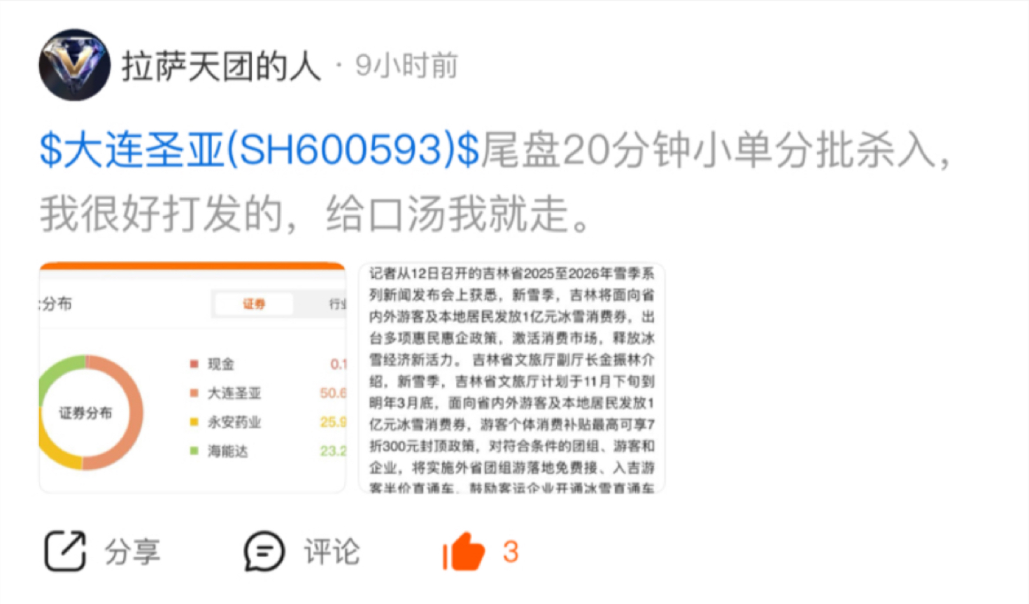 $大连圣亚(SH600593)$ 50的仓位卖了一上午,已清仓,各位股东留下发财~关注我跟动向