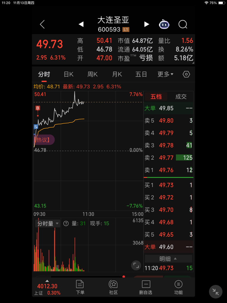 嘿嘿大连圣亚粘上天赐材料光一起涨停,点赞明天大连继续大阳,周线收线,月底冲70元
