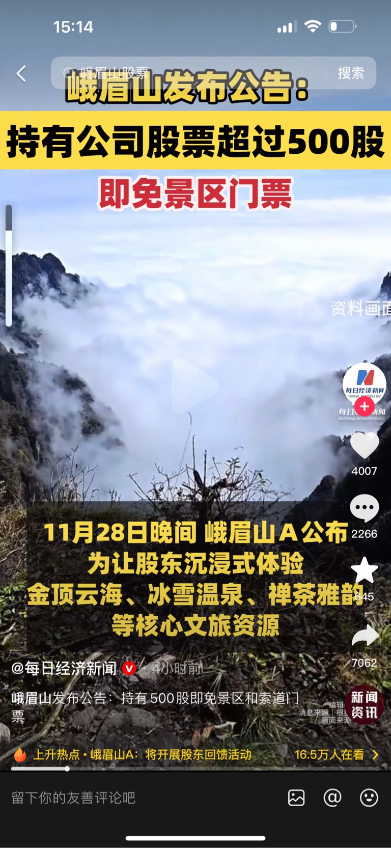 人家峨眉山持有500股6000块股票免费门票,你大连也来一个持有500股冰雪大世