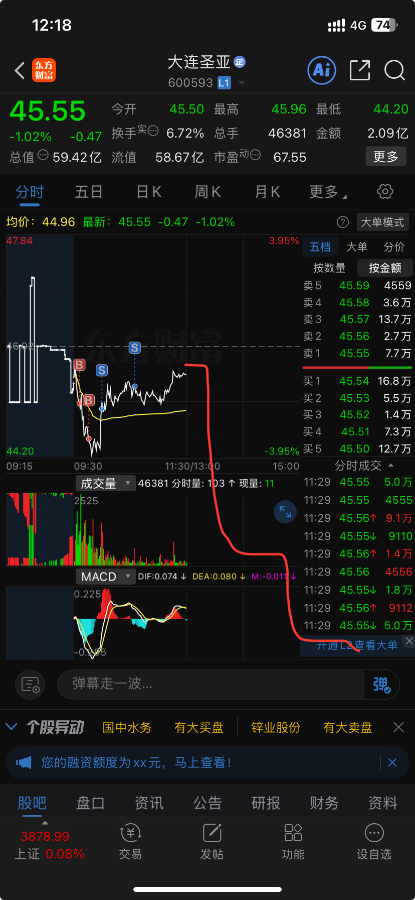 $大连圣亚(SH600593)$ 昨天画反了,今天我这样画,主力来按照我画的搞