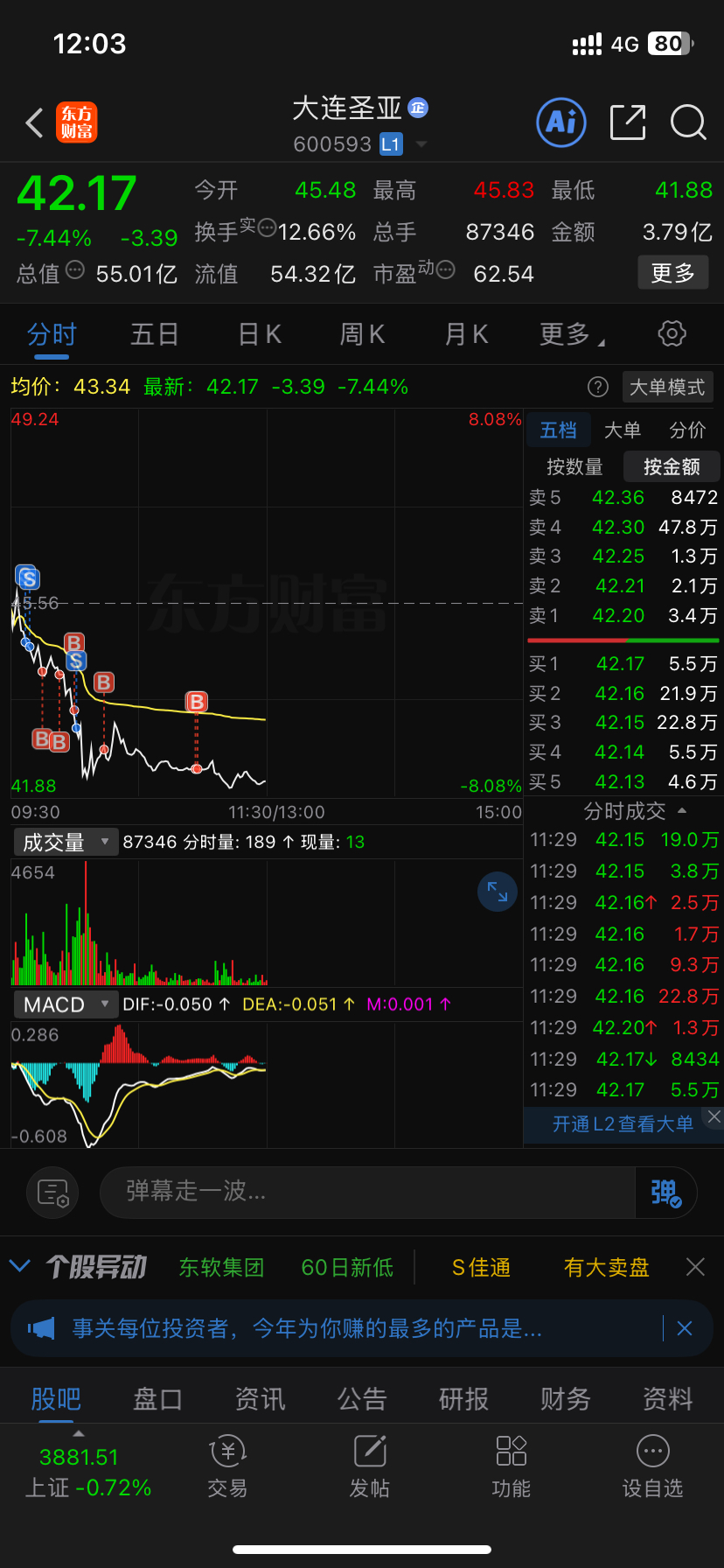 开局看不对劲清仓了,跌下来又进去了,全是散户踩踏,上面筹码全部被套,看反弹能不能