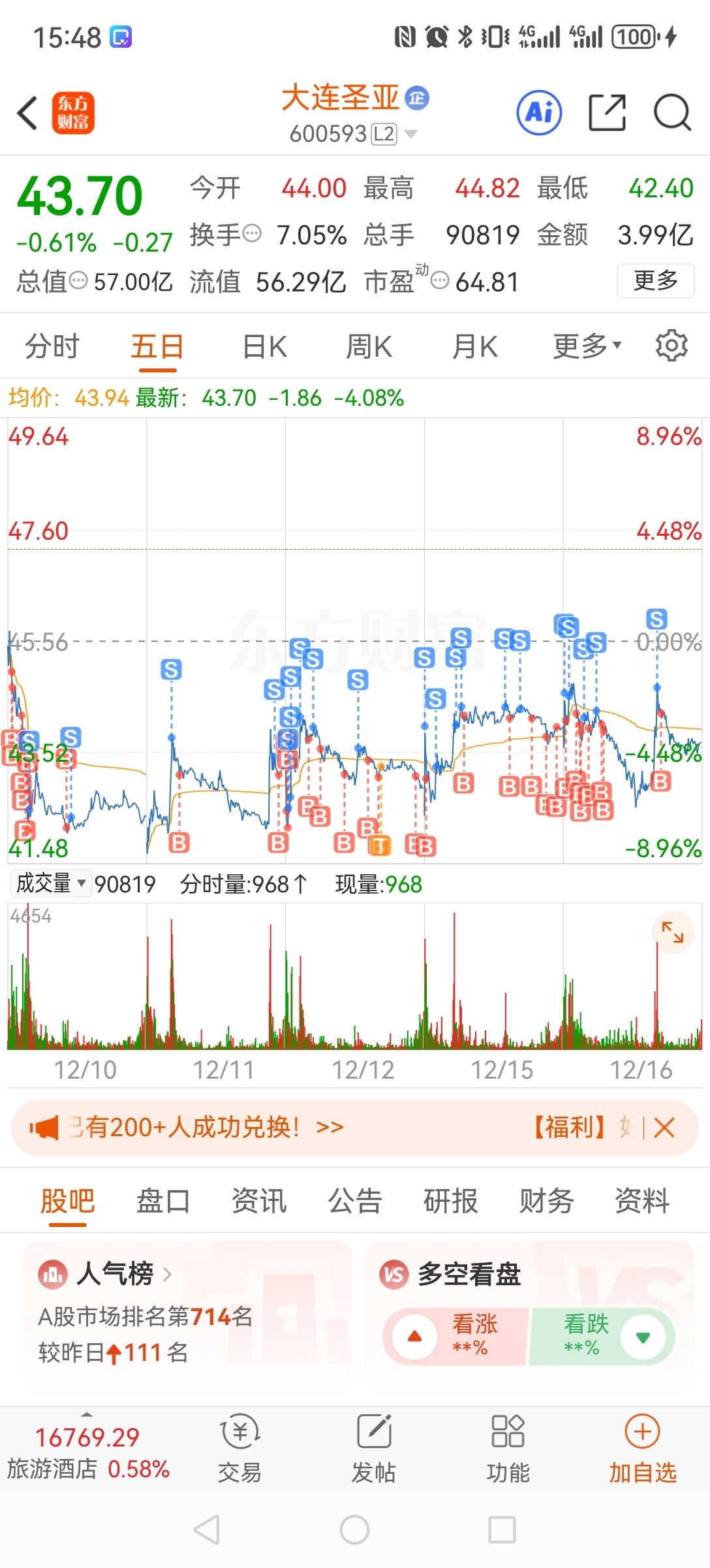 $大连圣亚(SH600593)$ 一天天的熬人呀