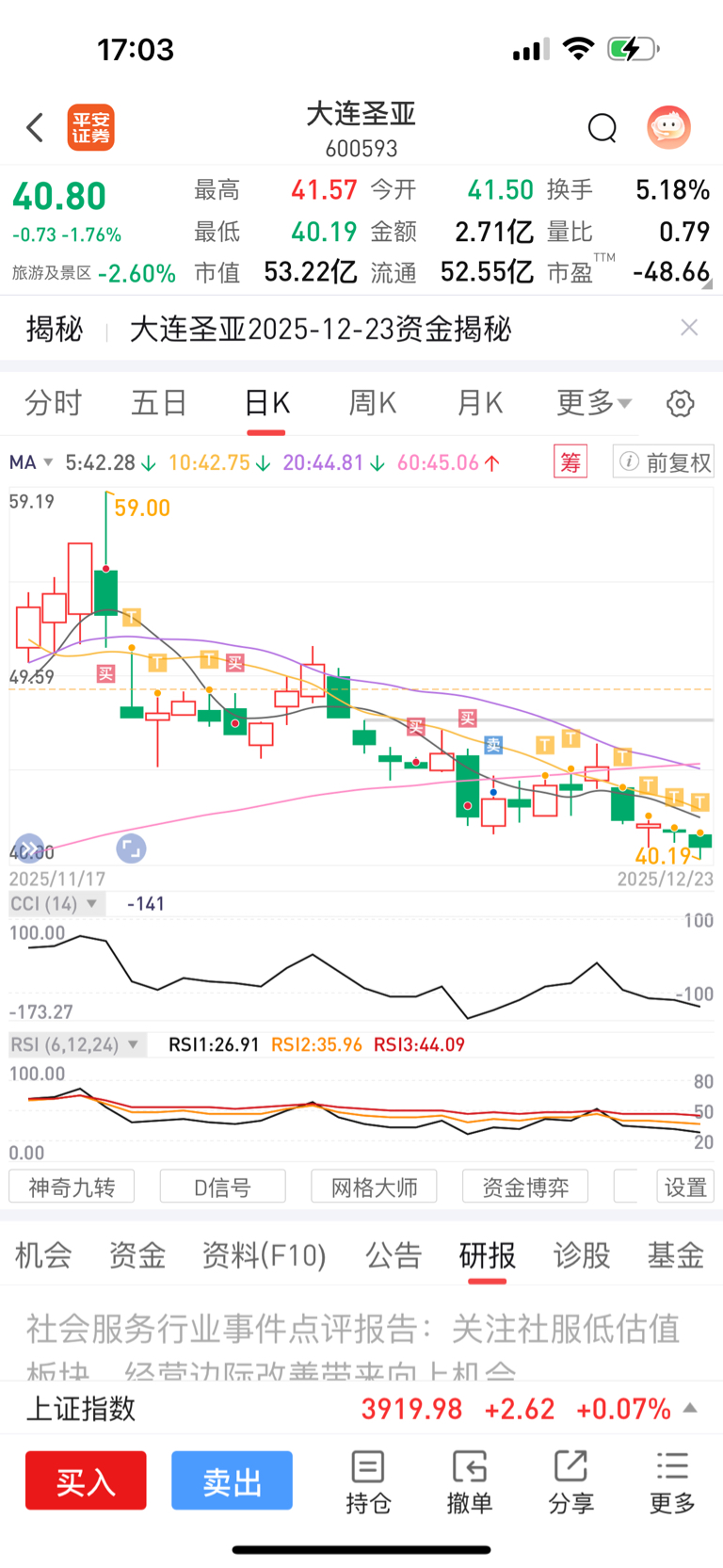 $大连圣亚(SH600593)$ 这走势就像下楼梯一样,怎么T的都都没用,每天就T了0.5