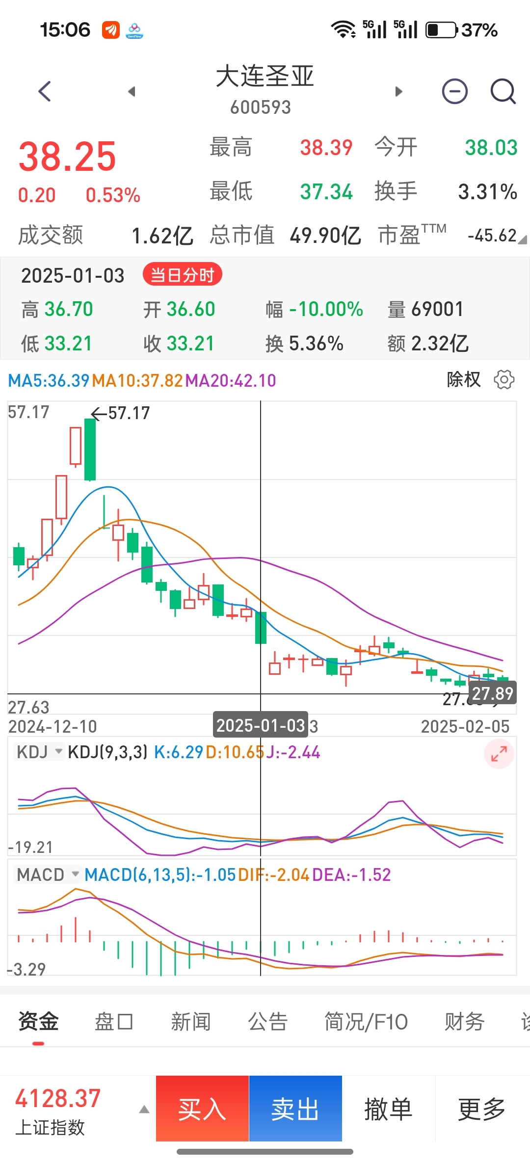 $大连圣亚(SH600593)$ 看之前的走势,准备明天一根大绿棒子