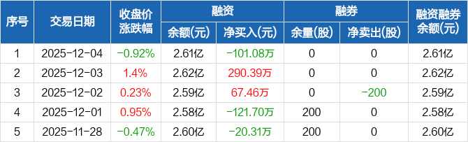 益佰制药:融资净偿还101.08万元,融资余额2.61亿元(12-04)