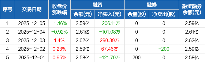 益佰制药:融资净偿还206.11万元,融资余额2.59亿元(12-05)