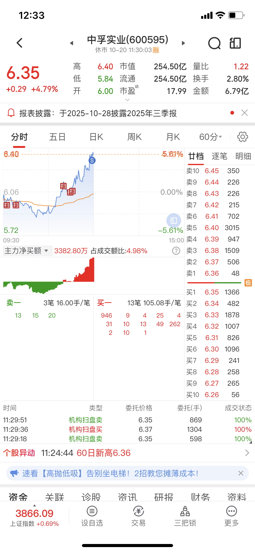 $中孚实业(SH600595)$ 6.09周五尾盘进的 6.35抛的 2万到手