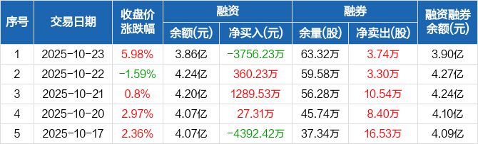 中孚实业:融资净偿还3756.23万元,融资余额3.86亿元(10-23)