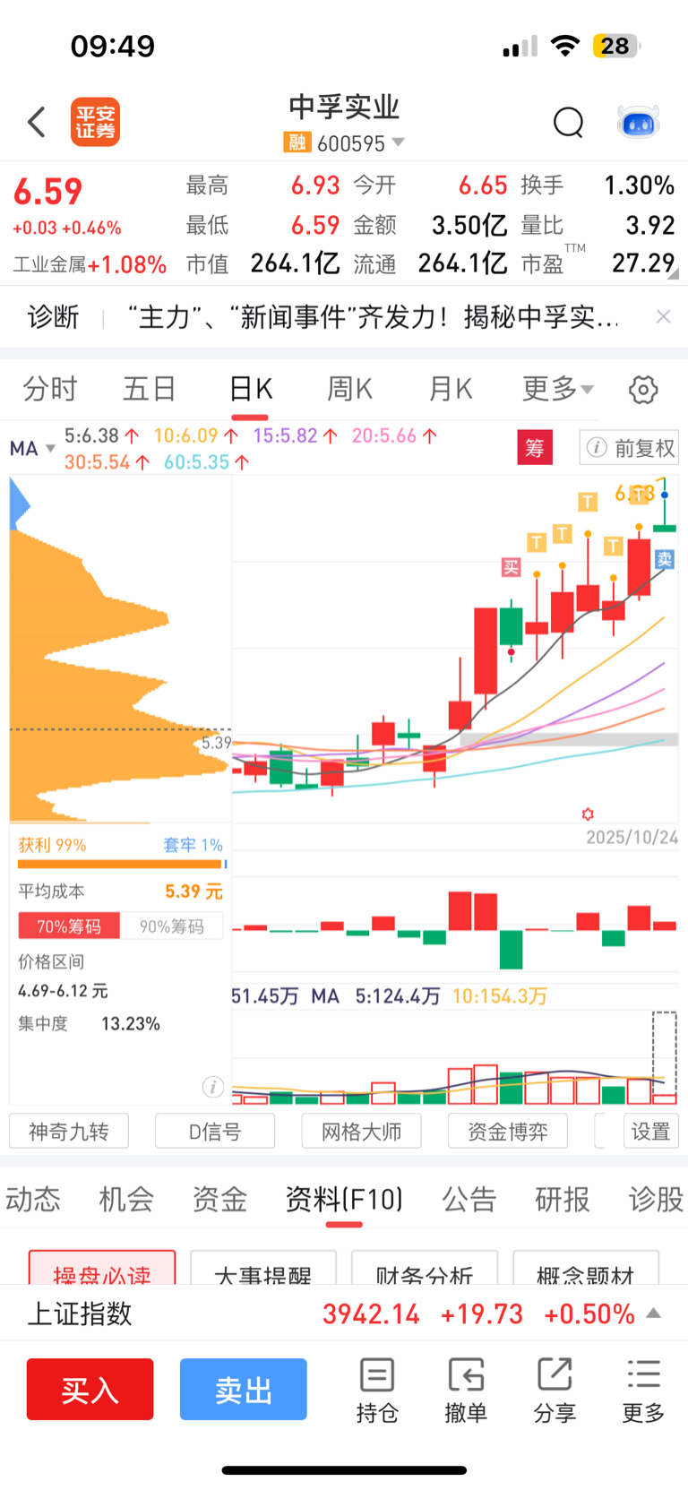 $中孚实业(SH600595)$ 先走,找机会再进,票不错
