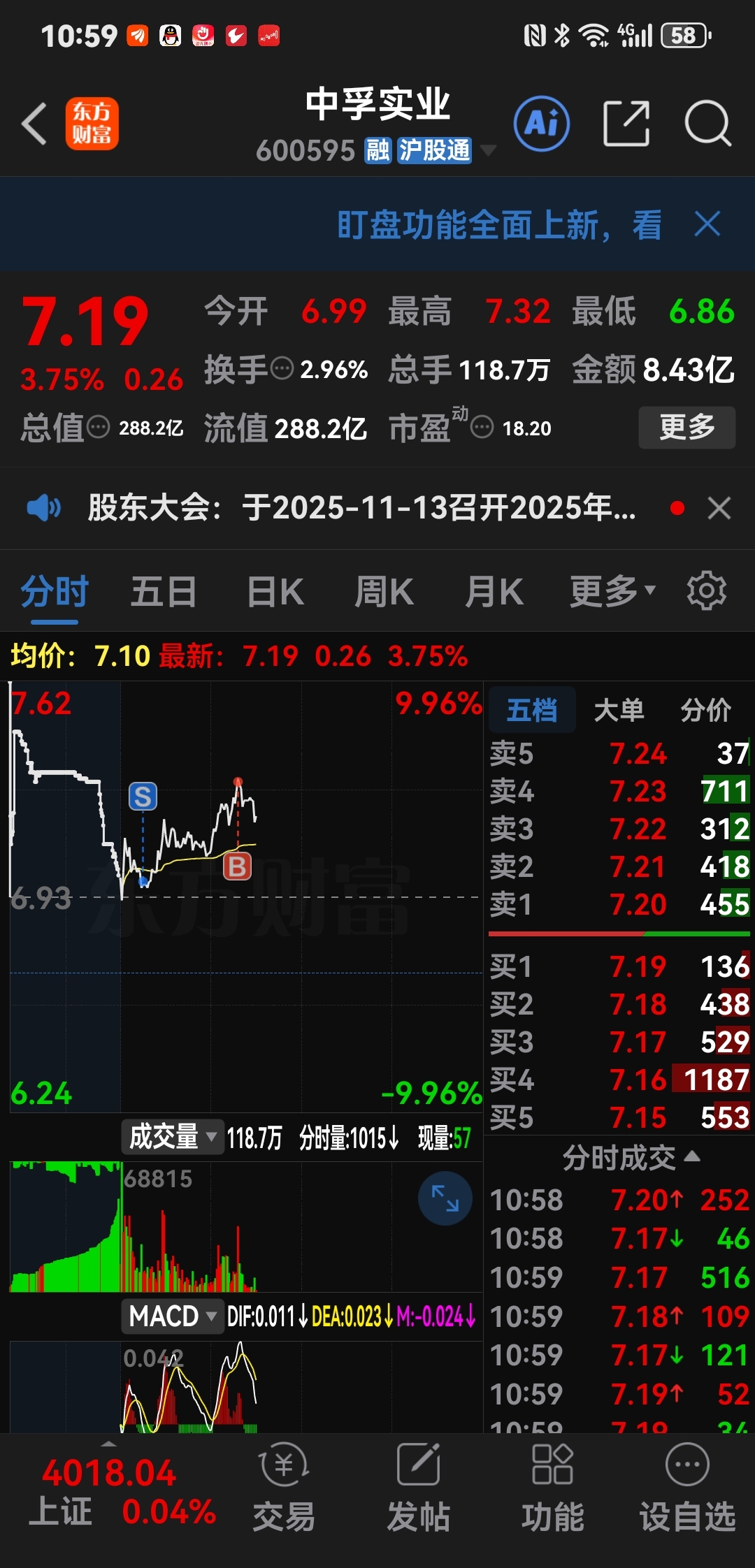 $中孚实业(SH600595)$ 干反了,还好按时钱少