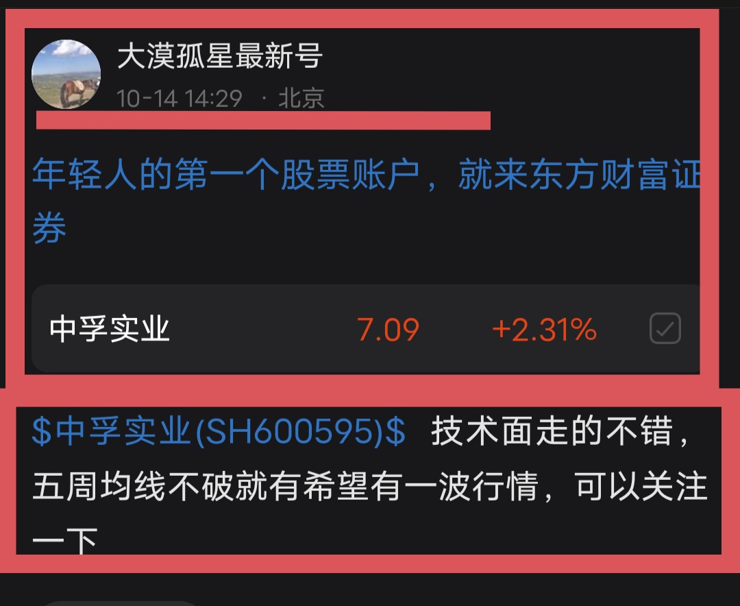 $中孚实业(SH600595)$ 通过这只股再一次证明,五周均线不破一路持有的意义所在,10月14号提示后两周多拉升20多个点我觉得就可以了,每天打板我也能抓到只是太考验大脑了,这样的波段操作不是也很好吗