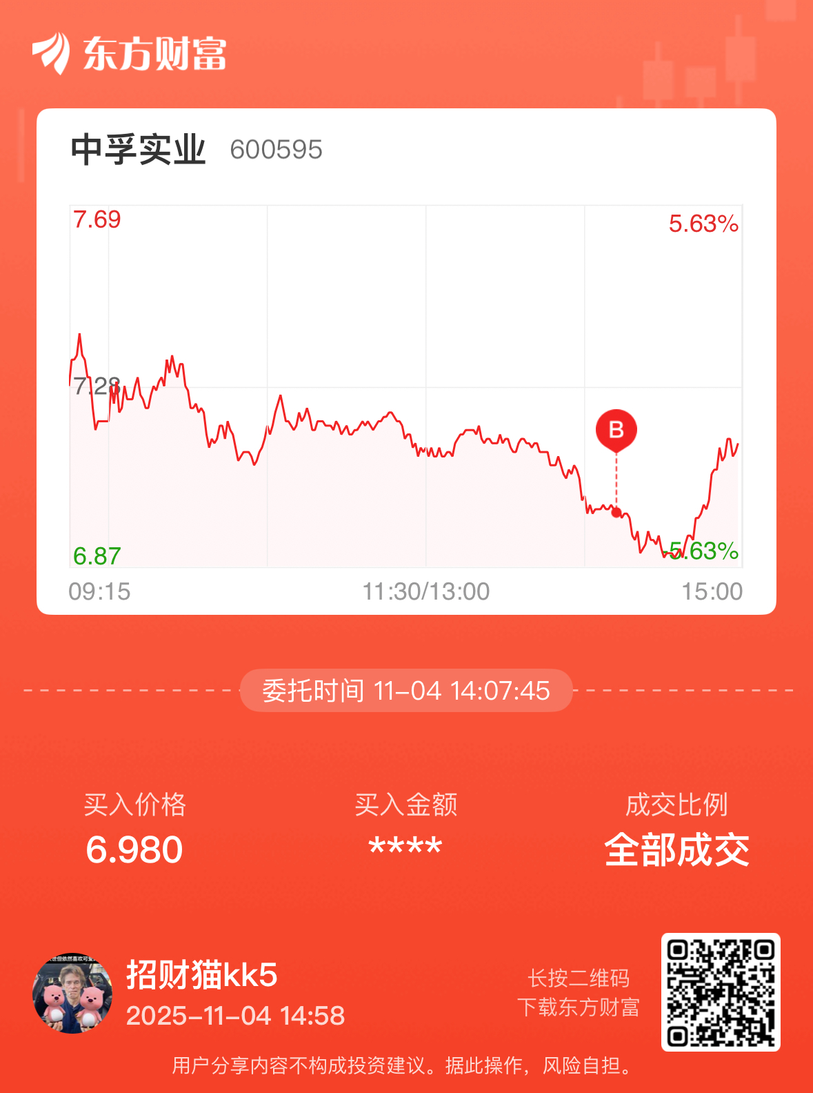 $中孚实业(SH600595)$ 早就说了7块以下随便买#炒股日记#
