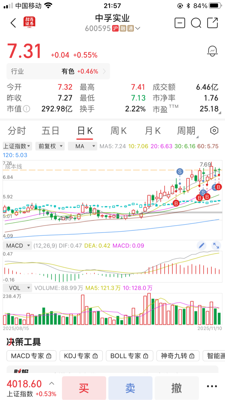 $中孚实业(SH600595)$