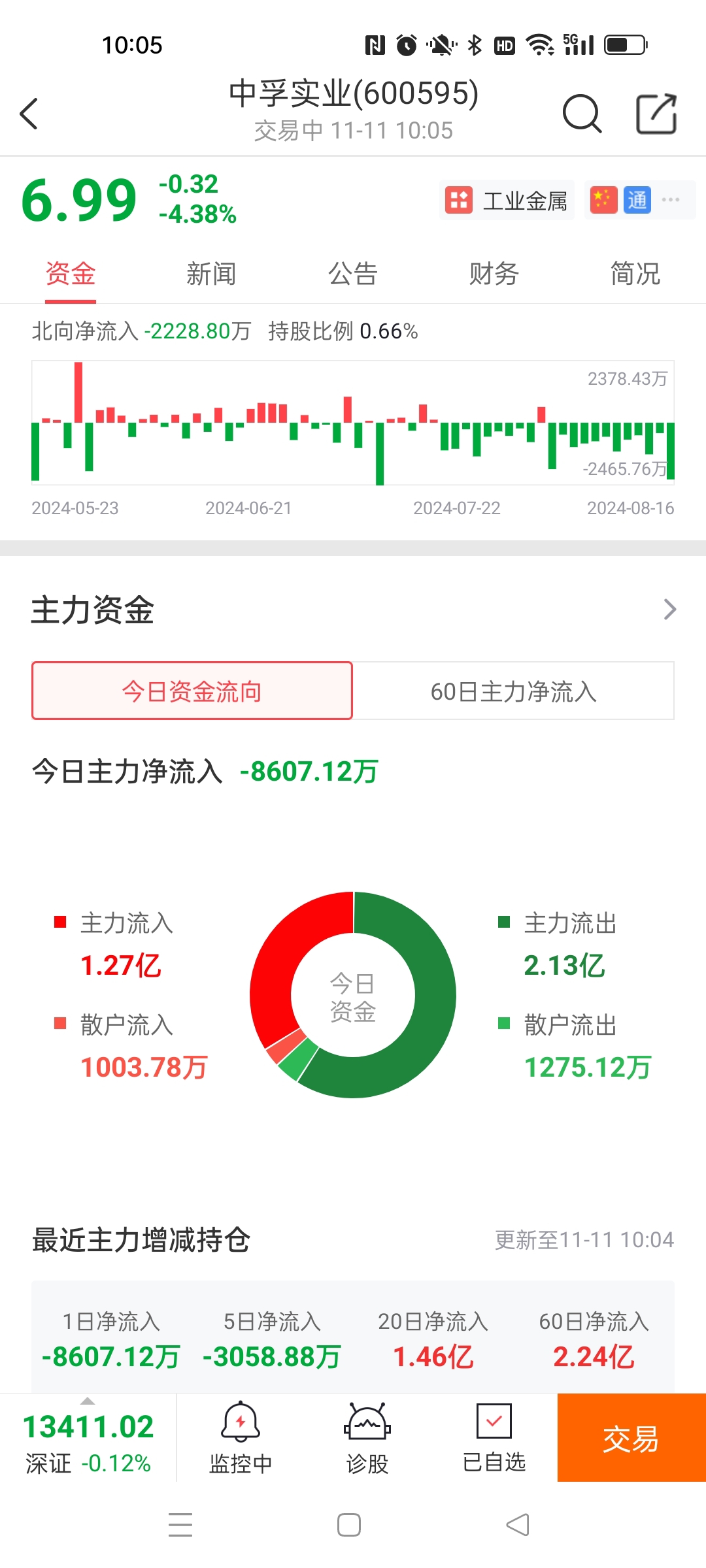 $中孚实业(SH600595)$ 主力流出了快9000万