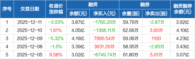 中孚实业:融资净偿还1760.2万元,融资余额3.87亿元(12-11)