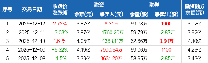 中孚实业:融资净买入8.31万元,融资余额3.87亿元(12-12)