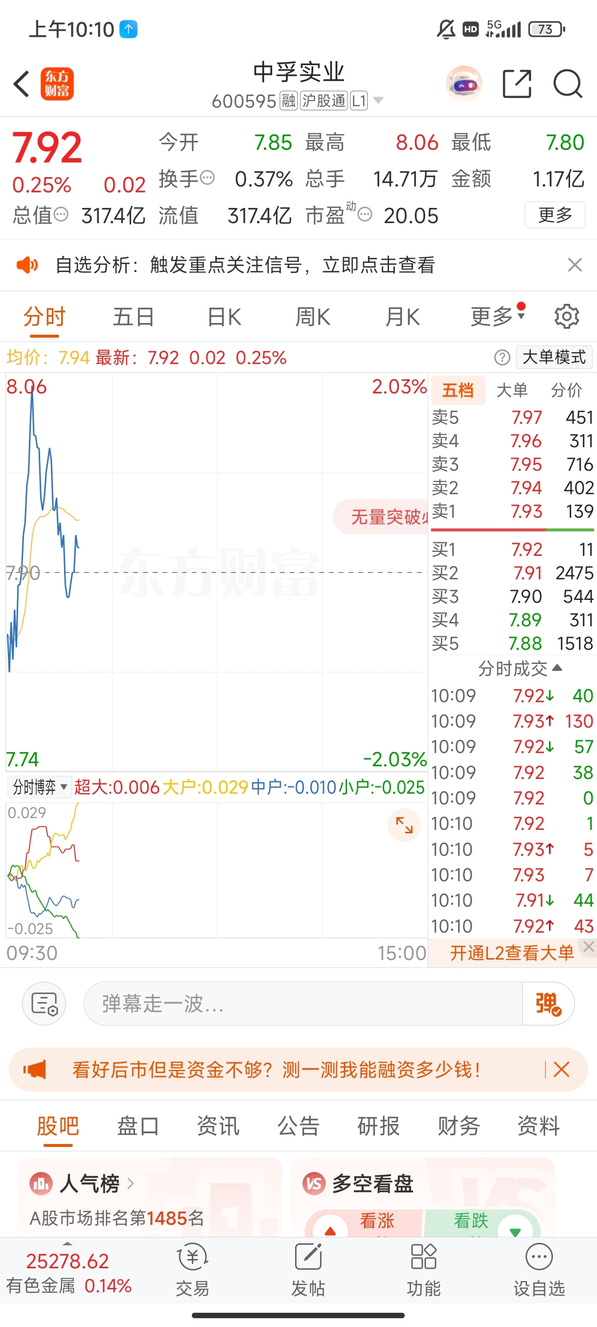 $中孚实业(SH600595)$ 零手是什么意思