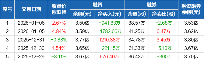 中孚实业:融资净偿还941.83万元,融资余额3.5亿元(01-06)