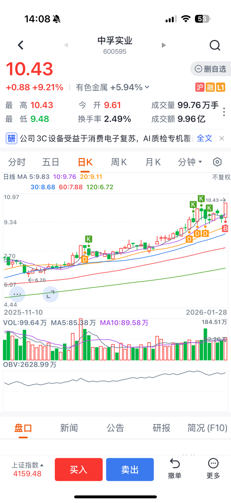 盘前看中孚,天山铝业,你盘子小好拉才选你,没想到你还是给人家当弟弟了。