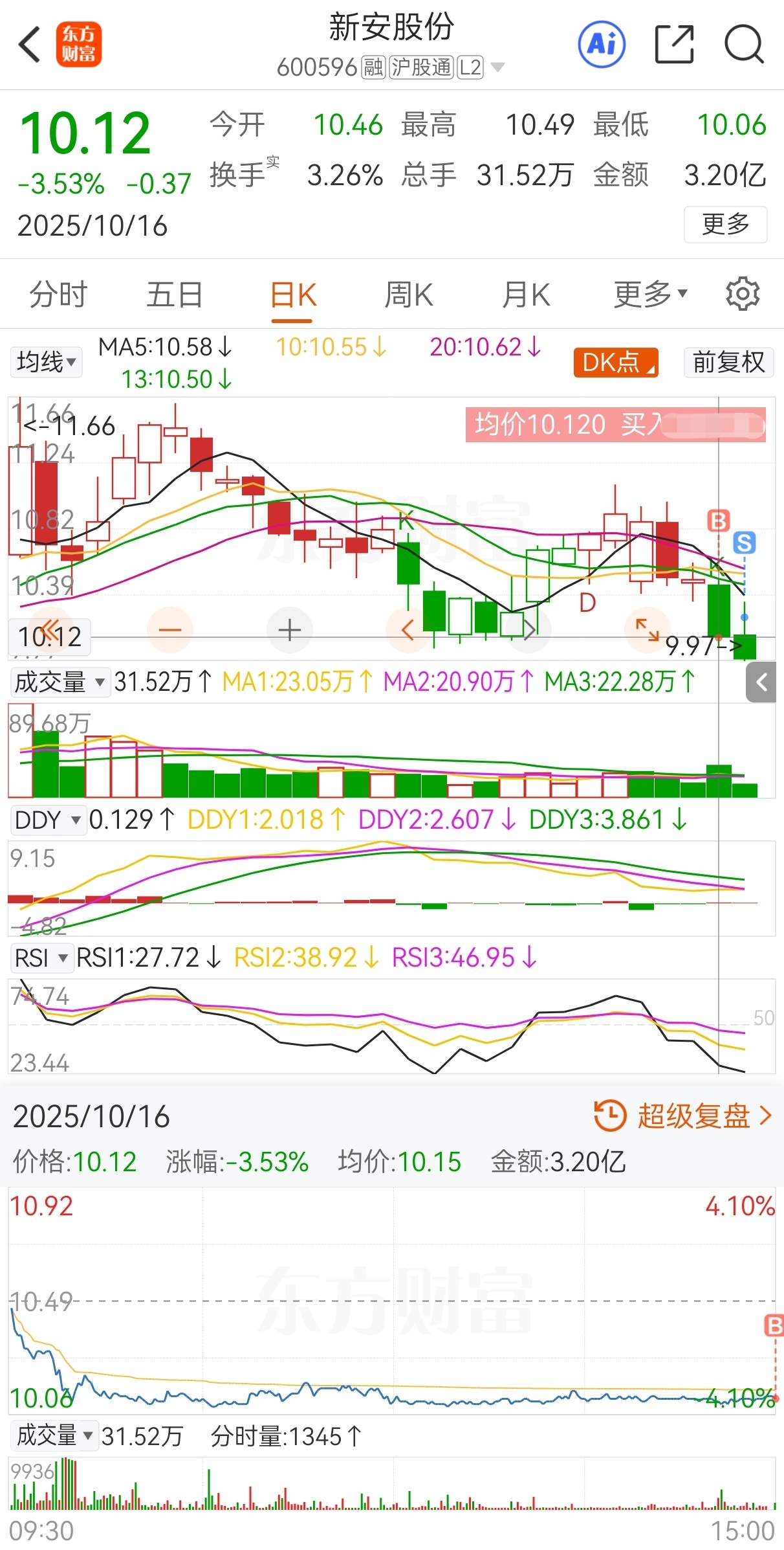 今买明卖,10.12买,10.25卖,实盘隔夜套利新安股份,成功收米走人!