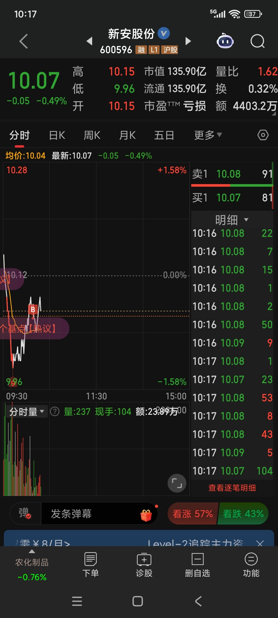 $新安股份(SH600596)$ 我又来了