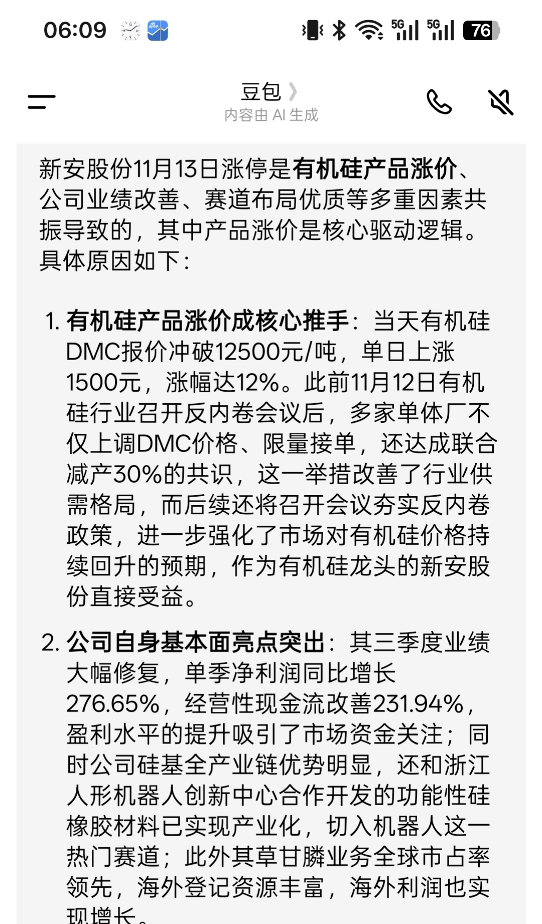 核心逻辑还是有机硅涨价,这个和六氟磷酸锂涨价一脉相承,市场资金是比较认可的,天际